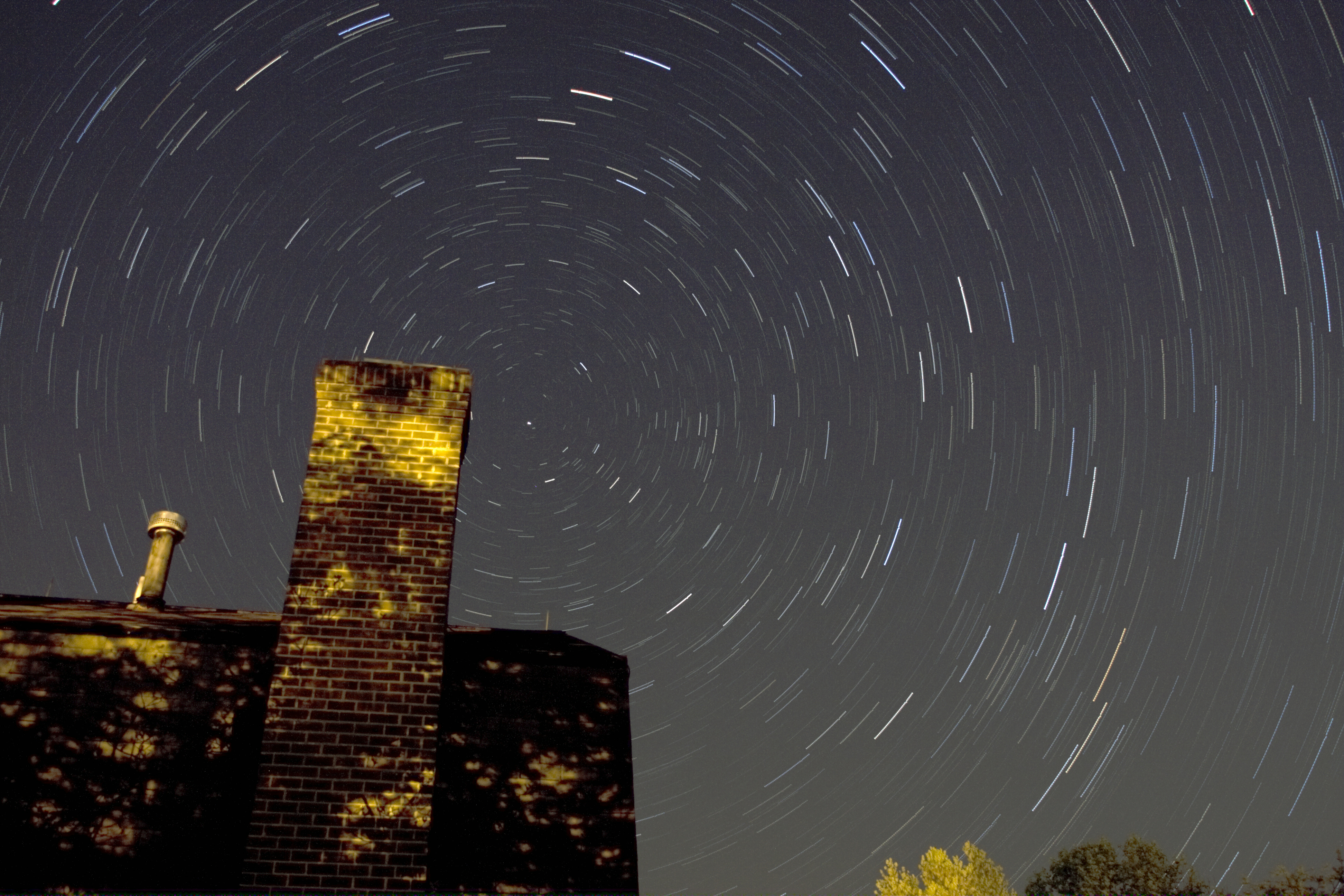 I was just testing my new timer remote and having problems so I didn't do things properly and forgot to take any dark frames. When I stacked just the light frames in Star Trails the hot pixels are very noticeable. Red and blue dots in the star field, some white dots/crosses in the chimney, etc. In fact, going back I can see the hot pixels in the original individual frames. Just FYI, 35 frames of 45-second exposures at 5-second intervals were shot.