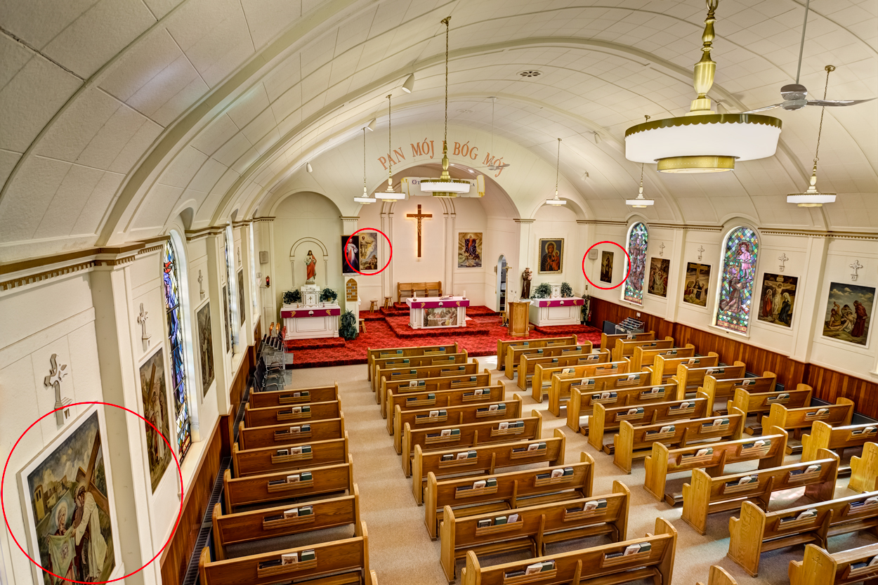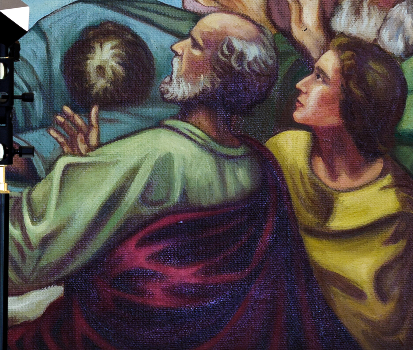 It looks terrible. The polariser didn't help any, which means they're direct reflections. I can't move the painting from its fixed place; so I'm quite at a loss as to what to do.