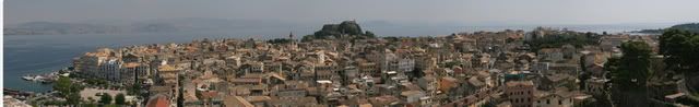 Corfu town from Old port, top right - to New port, bottom left. Five image stitch. Mainland Greece in the distance and Alania off to the Left.