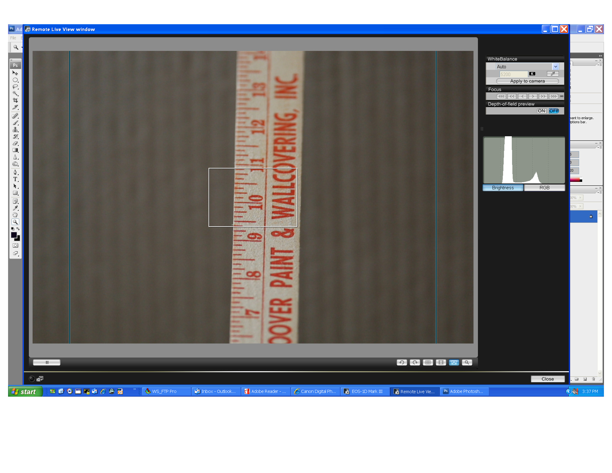 morehtml Goldmember 2,987 posts Likes: 1 Joined Aug 2005 Location: Murfreesboro, TN More info | Just playing with the af microadjustment now. It is pretty easy to set. I just put rig on tripod, hook up camera to computer via usb. Start EOS utility, start remote shooting. I set up a slanted wooden ruler to shoot. Locked tripod with center af point on number to be in focus and auto focus. Then in EOS utility switch to 'live view shooting' and I can magnify image huge. Set af adjustment if needed from -20 to +20. Then repeat till happy. Takes about 2-5 min per lens. REALLY cool! ---------------