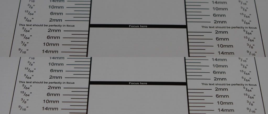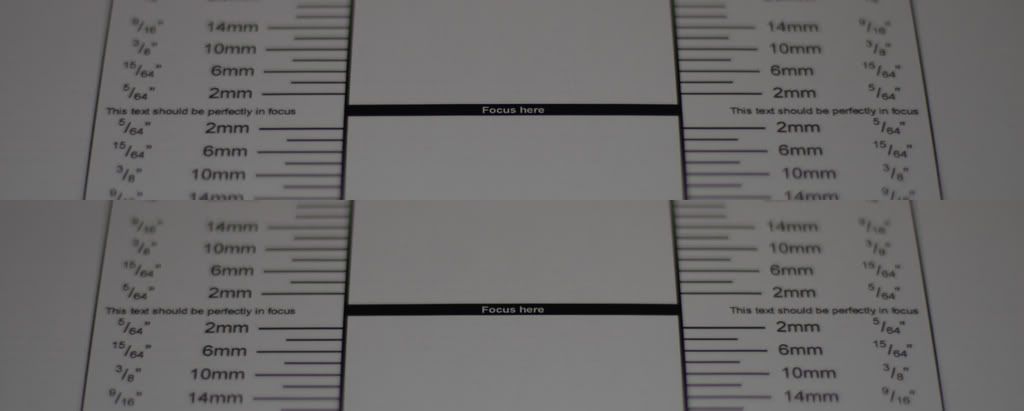 The top line is auto focus, the bottom is manual focus. I am seeing manual focus distinctly sharper than auto. Is this within spec? The difference doesnt seem so bad and I'm leaning toward user error here.