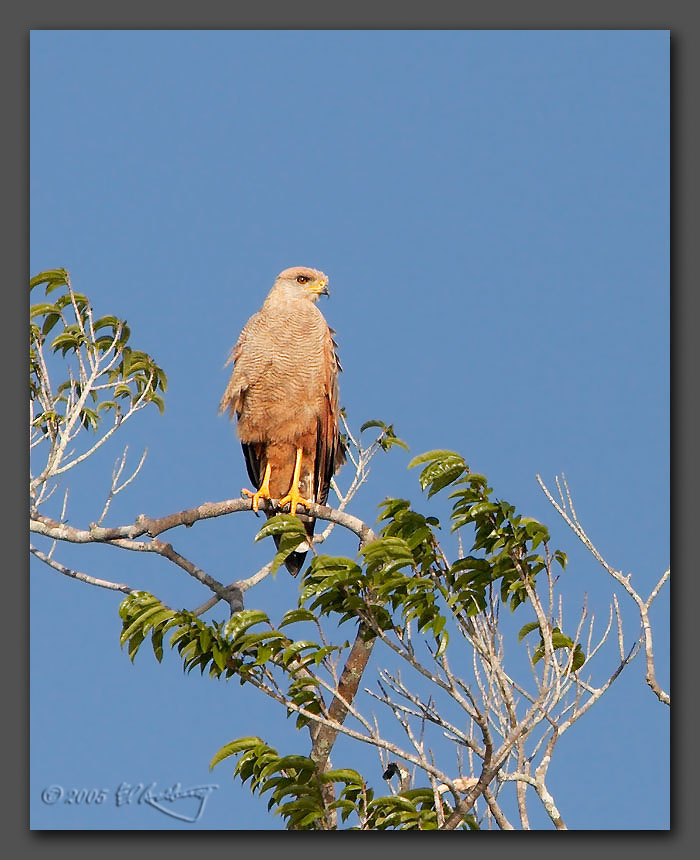 Savannah Hawk. We only saw these guys on 2 different occasions. Forturnately, this one was in the sunlight with the sun at our backs. I really wish I'd had a longer IS capable lens along