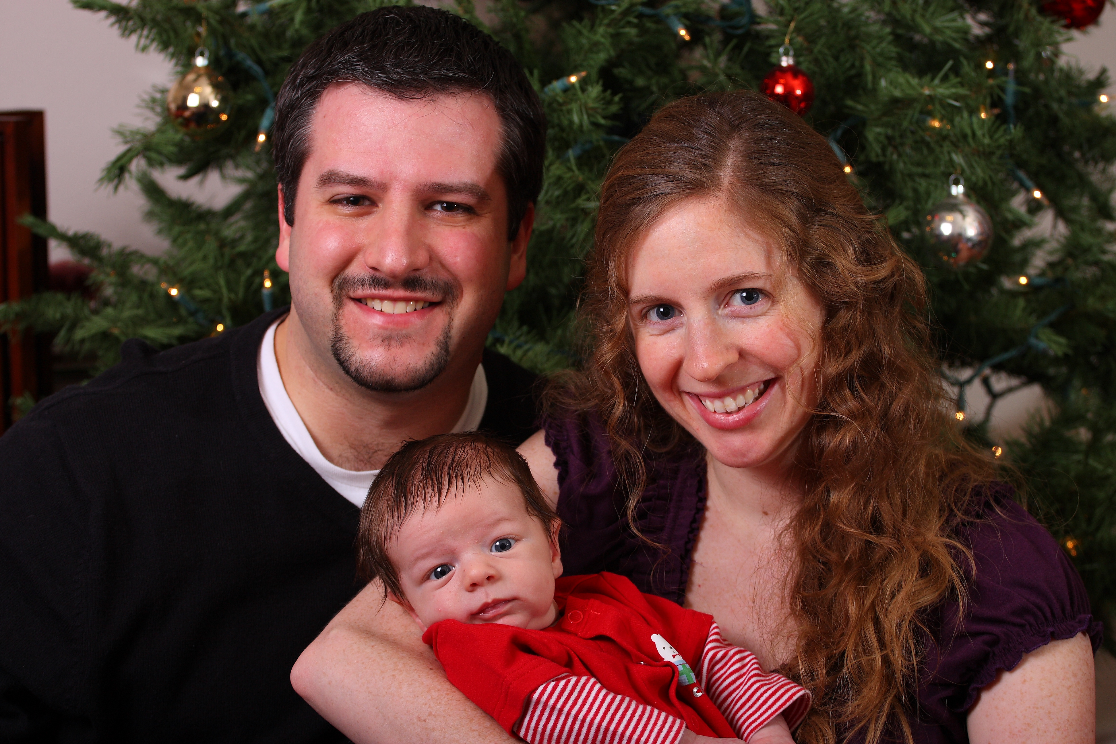 As for the crop, ugh, that was kind of a pain. I was trying to balance A) The tight space I had to fit the camera and us, B) Trying to fill the background with the tree as much as possible (had to sit on the floor where the tree is widest), and C) Getting the DOF to where the tree was blurred sufficiently (and D - Trying to do it all while the baby was still happy