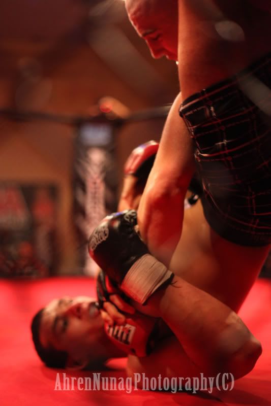 Here is my first attempt at shooting a MMA event...The lighting was horrible, the ring was a giant reflector, and my original images are saturated in red.
